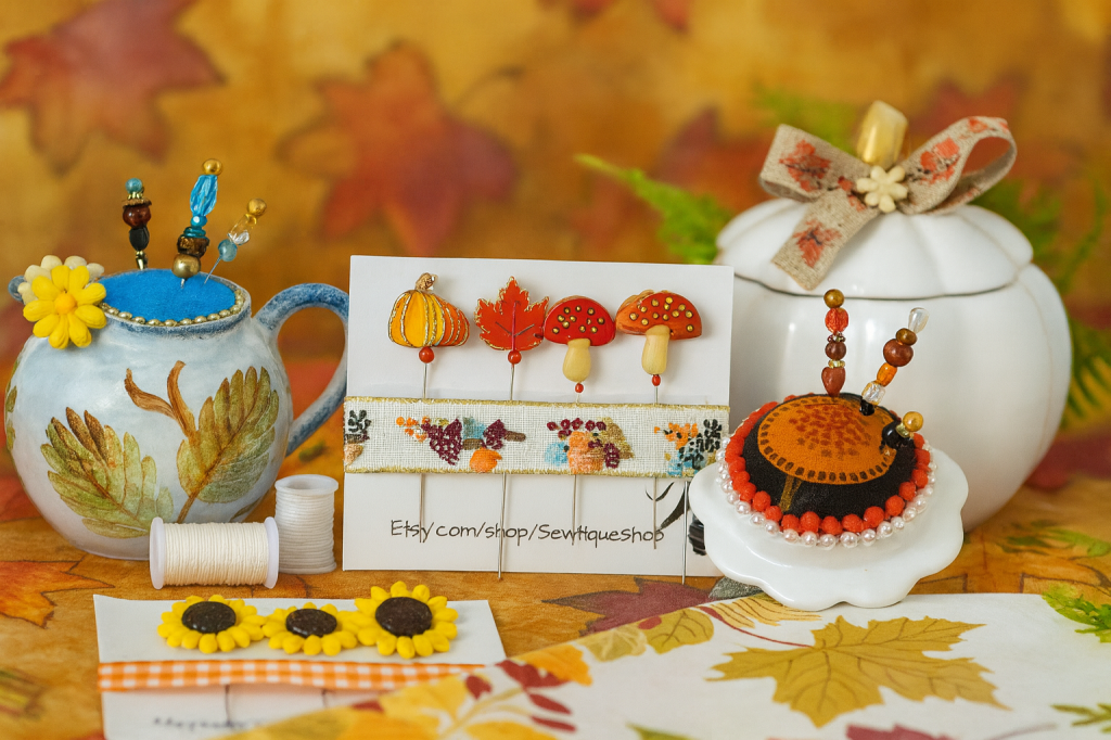 If a pincushion is your centerpiece, then decorative pins are the jewelry. Instead of using plain pins, why not choose whimsical, seasonal ones? A set of fall-themed pins β tiny acorns, leaves, or mushrooms β instantly elevates your sewing space.